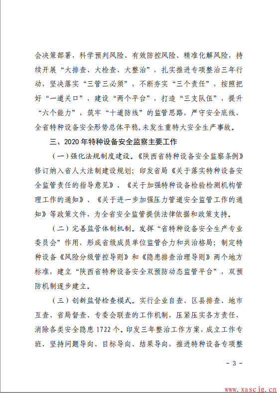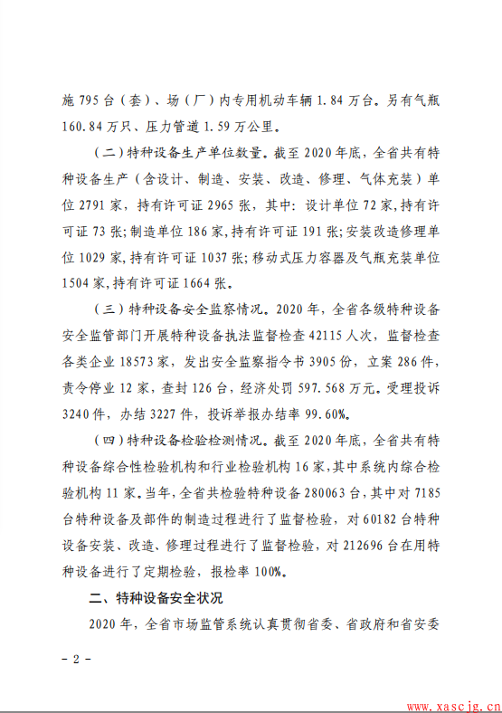 转发陕西省市场监督管理局关于2020年全省特种设备安全状况的通告