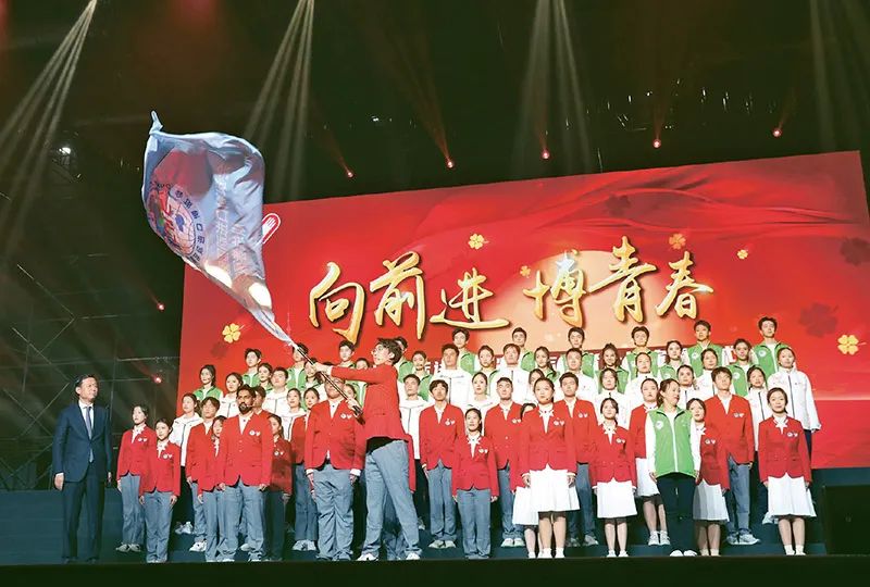 ▲2023年10月17日,第六届中国国际进口博览会志愿者上岗宣誓仪式在国家会展中心(上海)举行,5700余名志愿者宣誓上岗。图为当日拍摄的志愿者总队授旗仪式。新华社记者 刘颖/摄