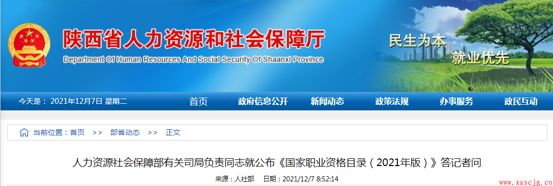 人力资源社会保障部有关司局负责同志就公布《国家职业资格目录(2021年版)》答记者问
