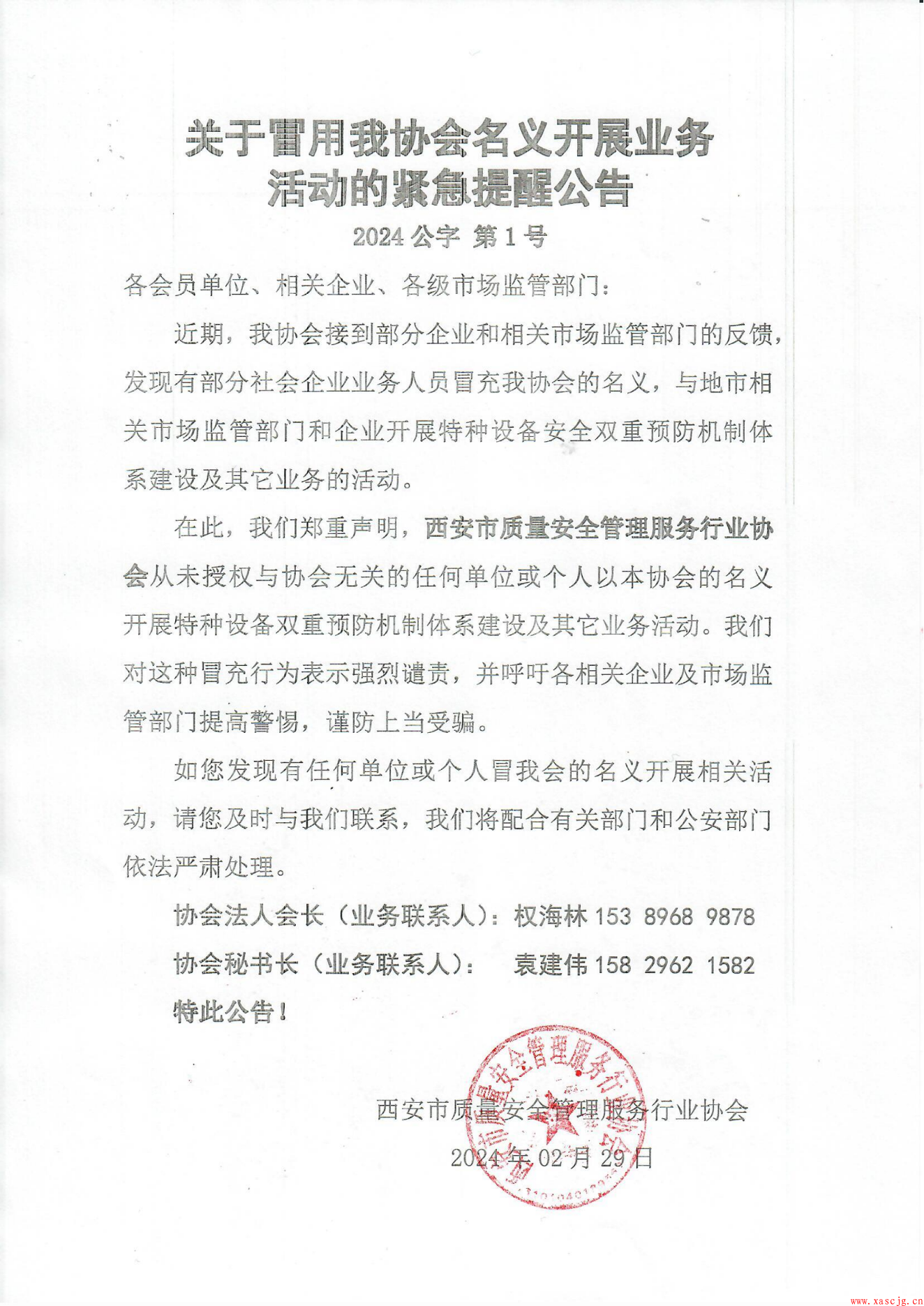 关于冒用我协会名义开展业务活动的紧急提醒公告