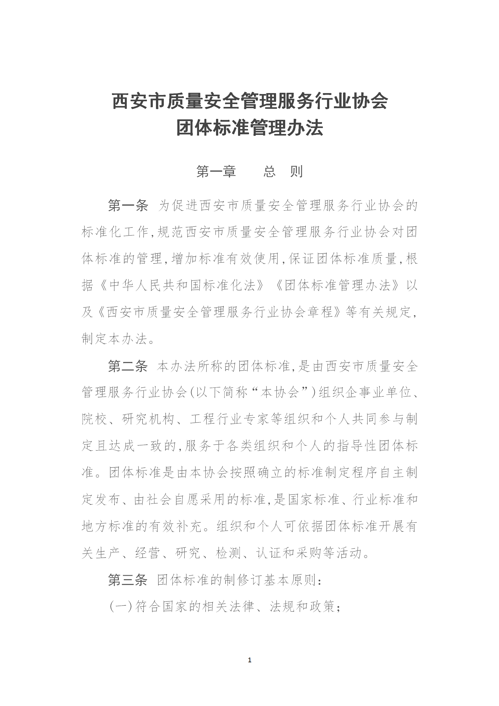 西安市质量安全管理服务行业协会团体标准管理办法