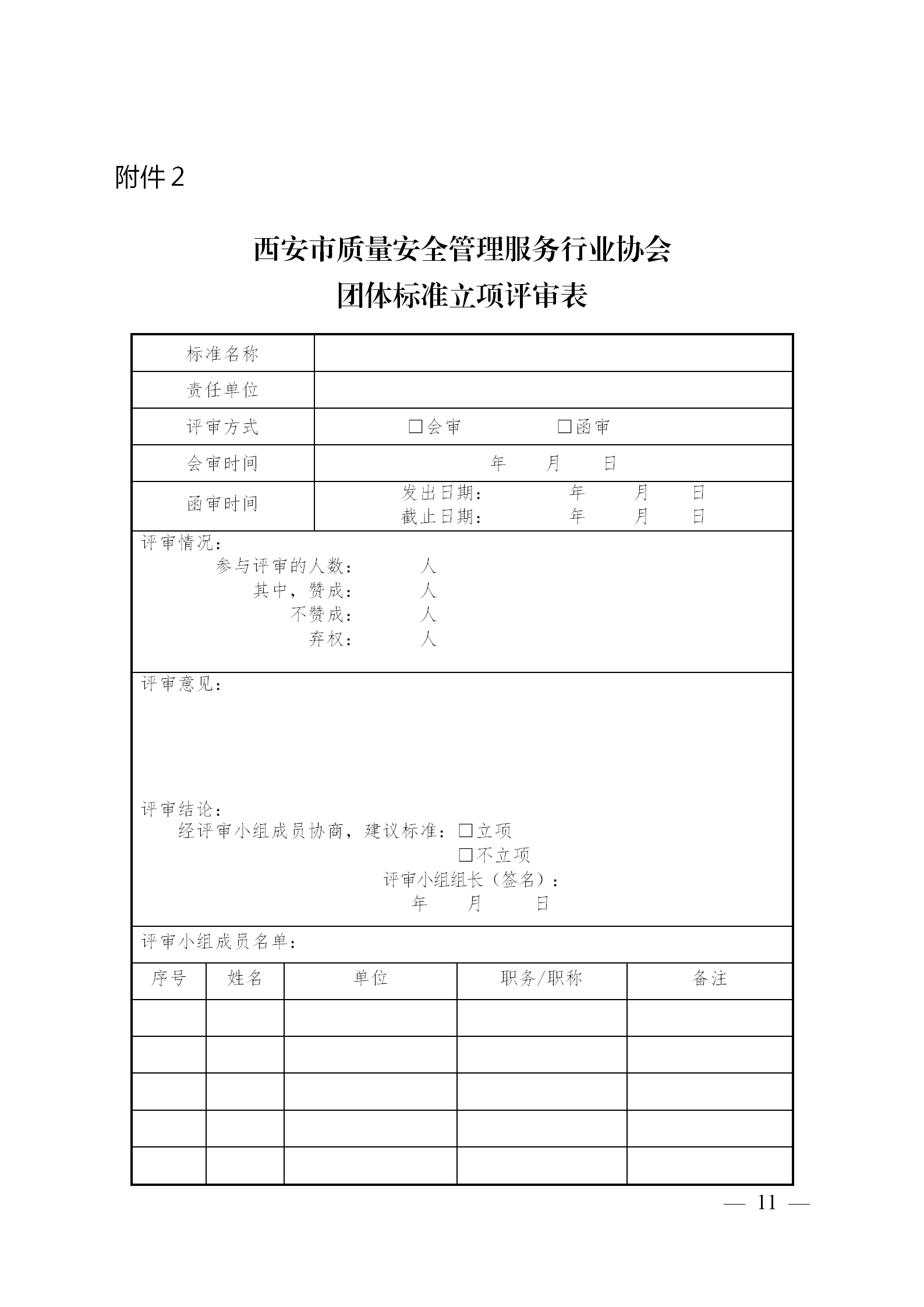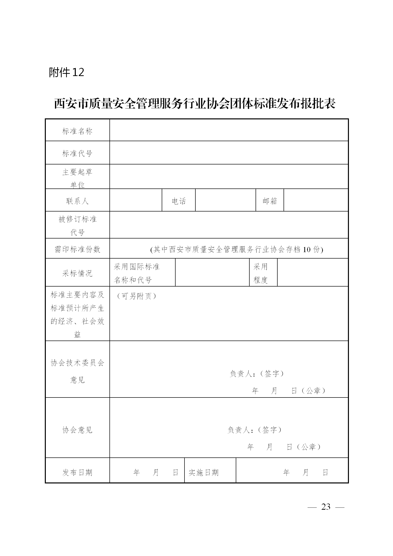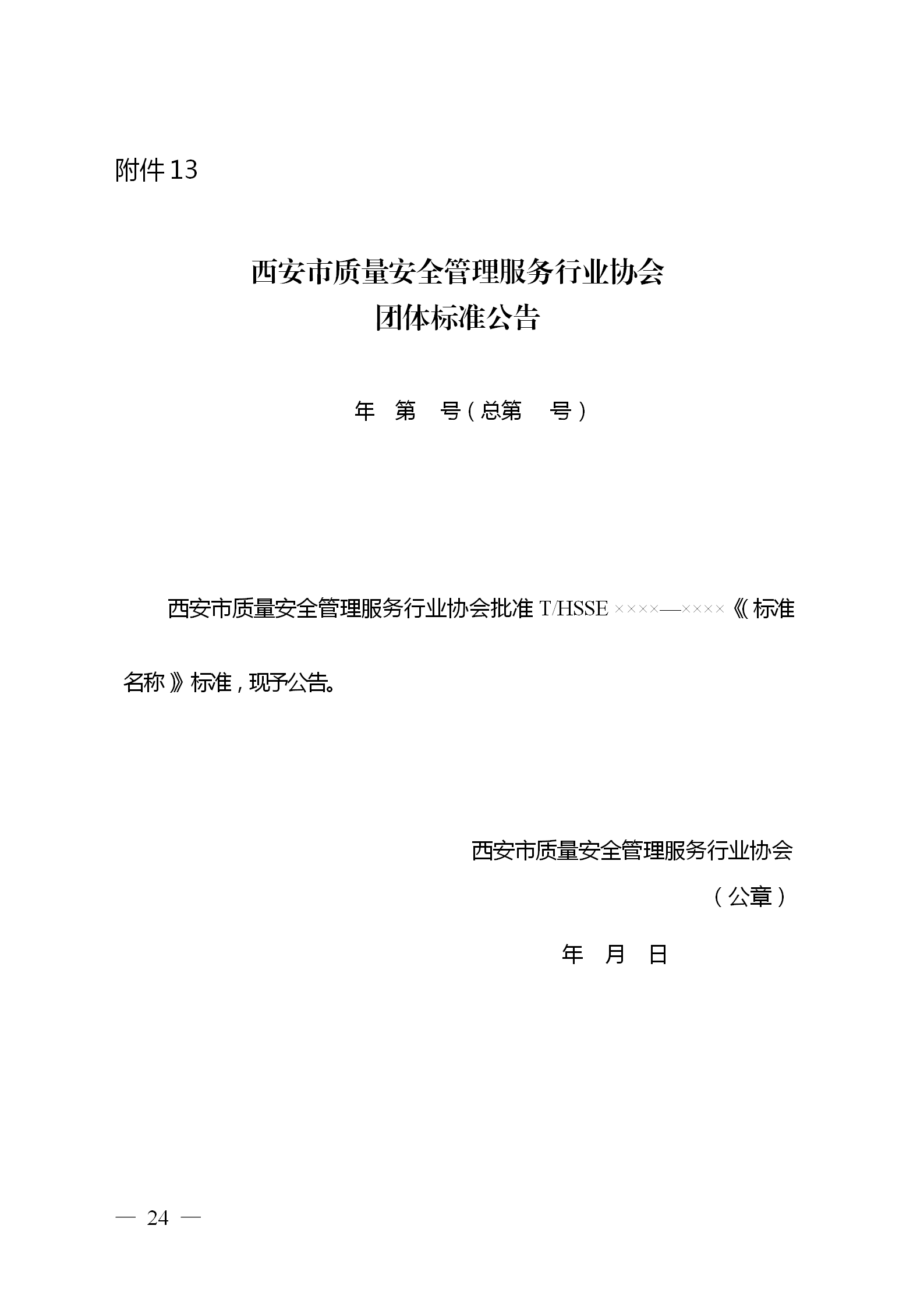 西安市质量安全管理服务行业协会团体标准公告