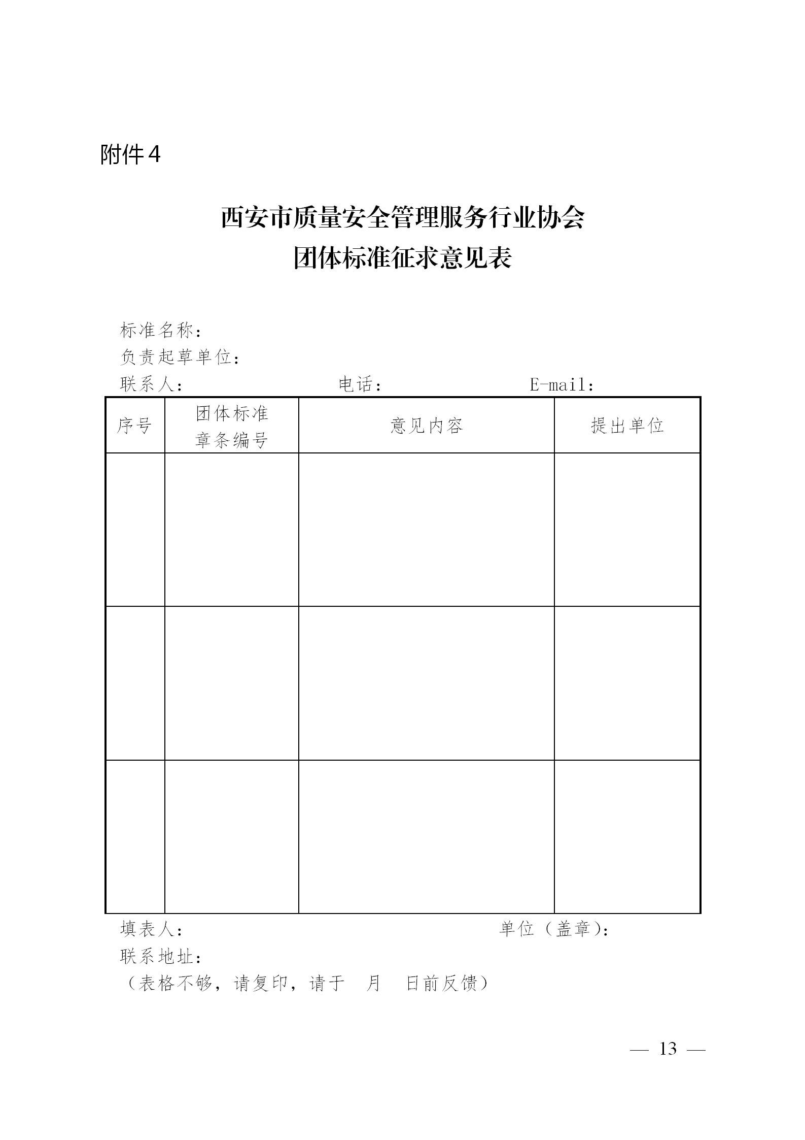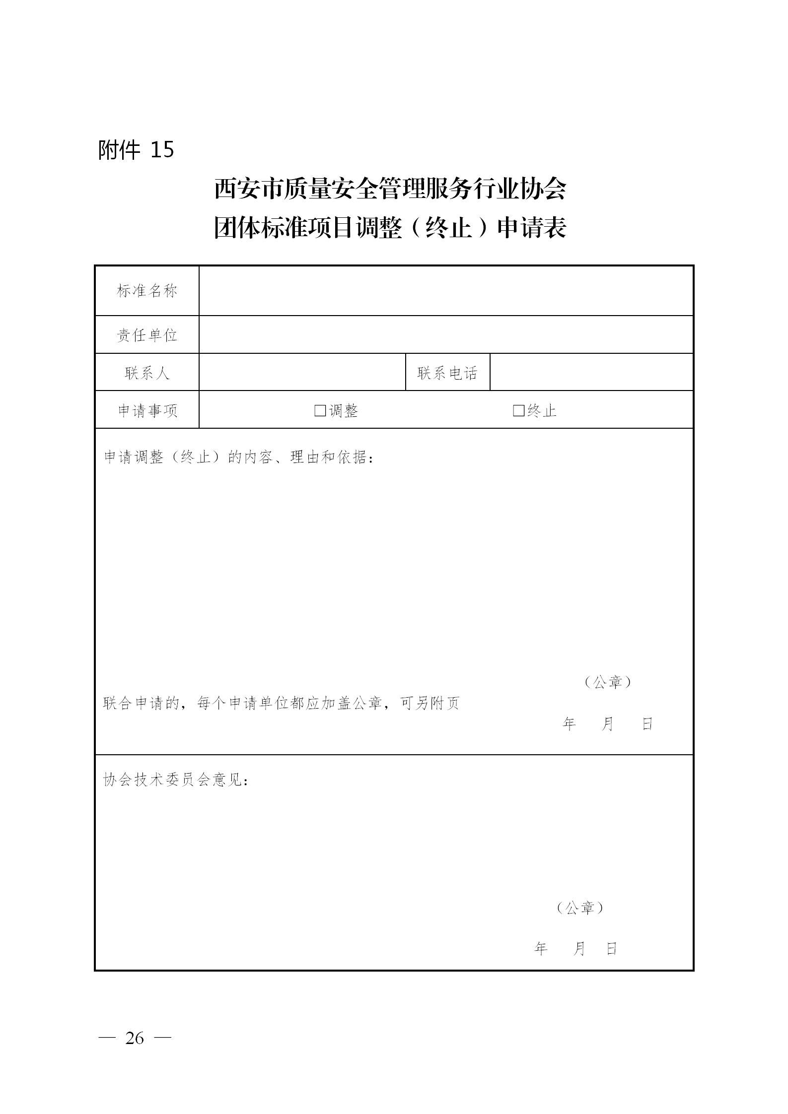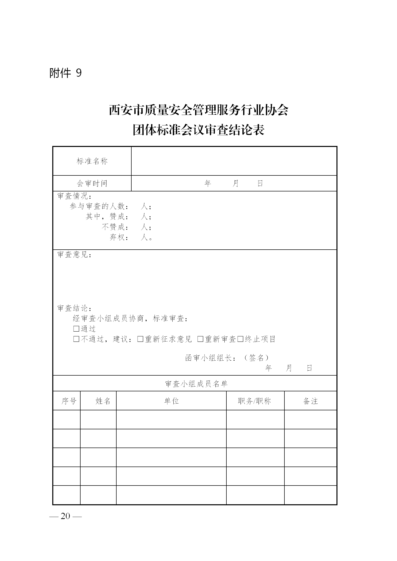 西安市质量安全管理服务行业协会团体标准公告