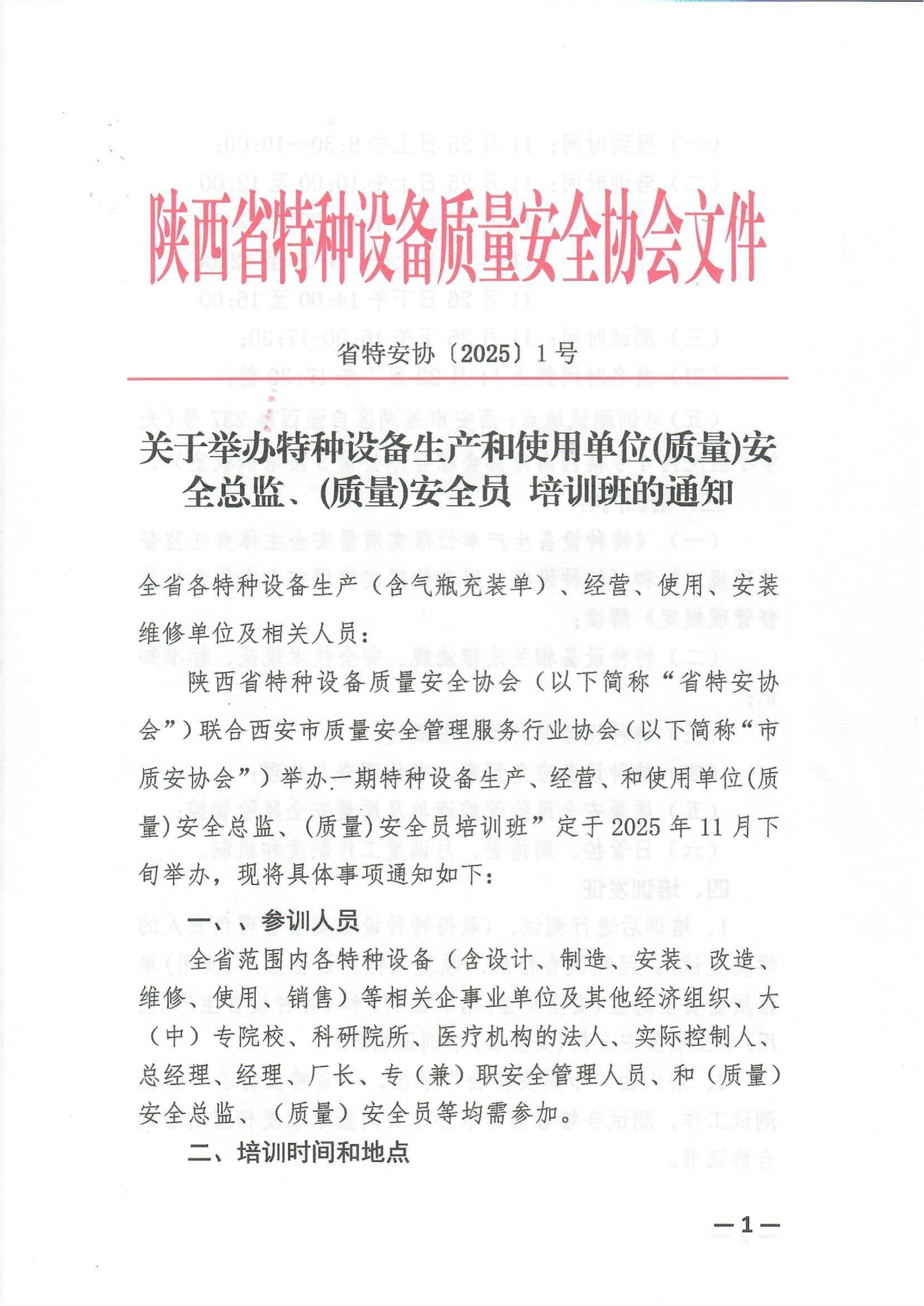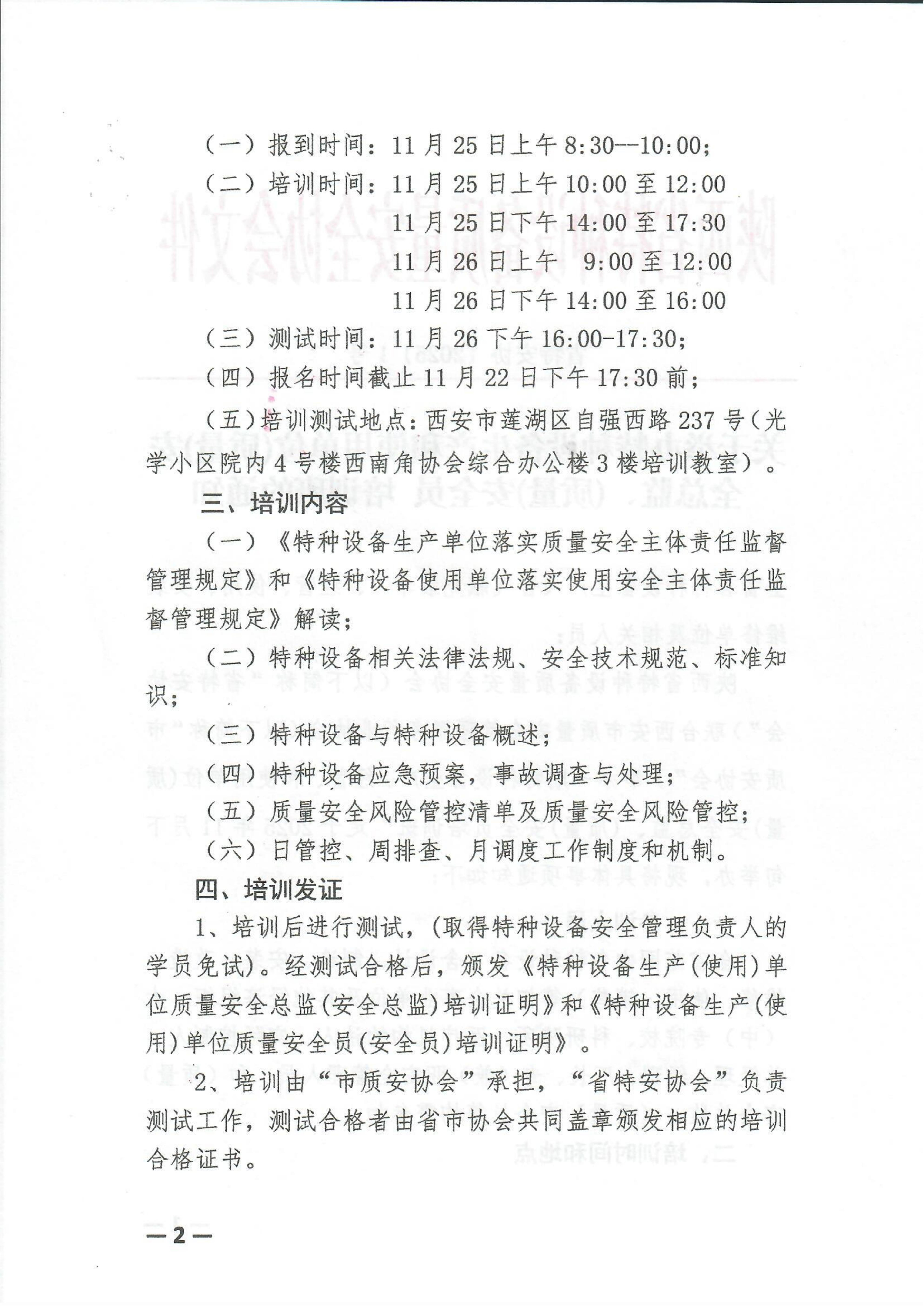关于举办特种设备生产和使用单位(质量)安全总监、(质量)安全员培训班的通知