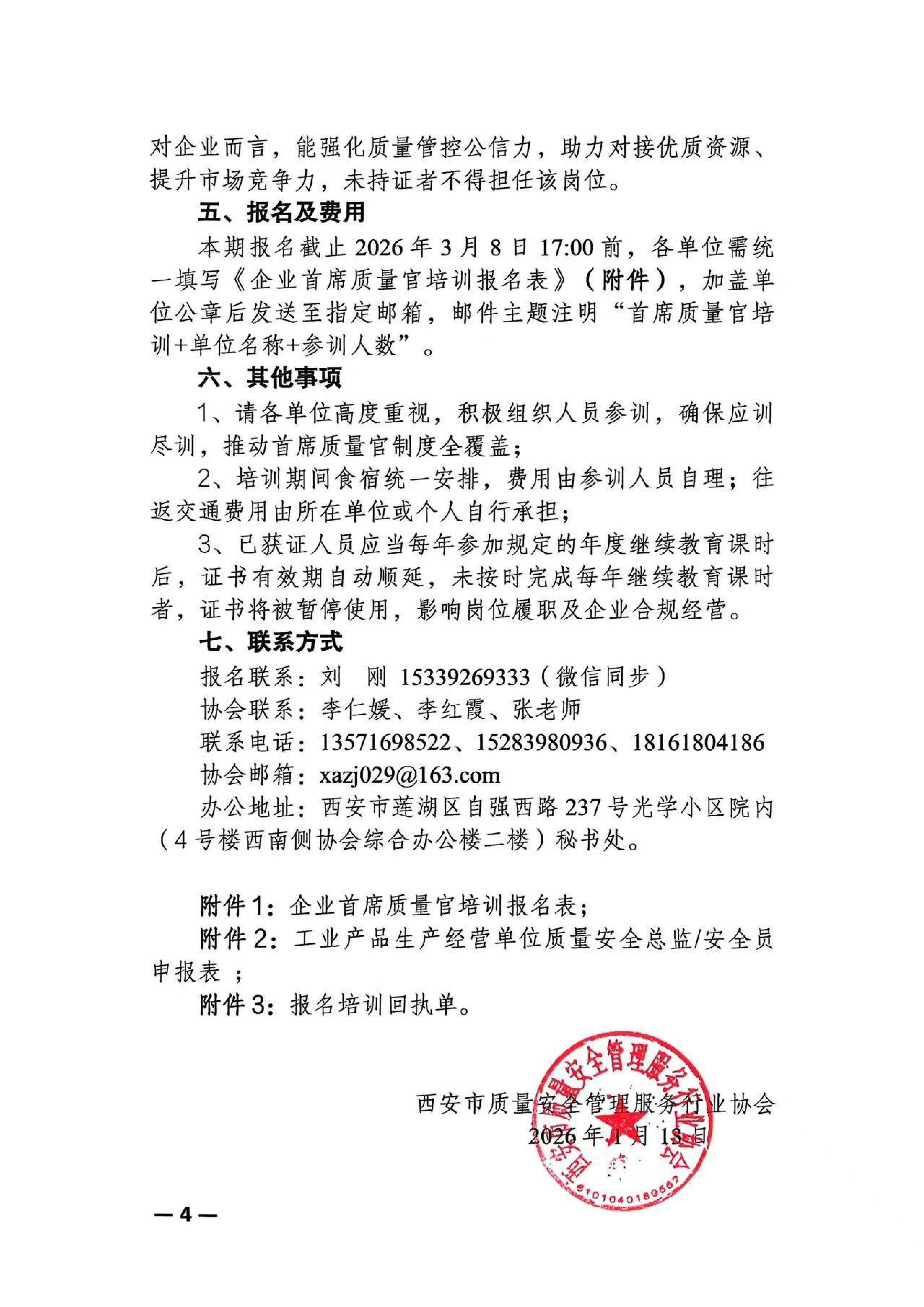 关于举办2026年度第一期企业首席质量官培训考核工作的通知