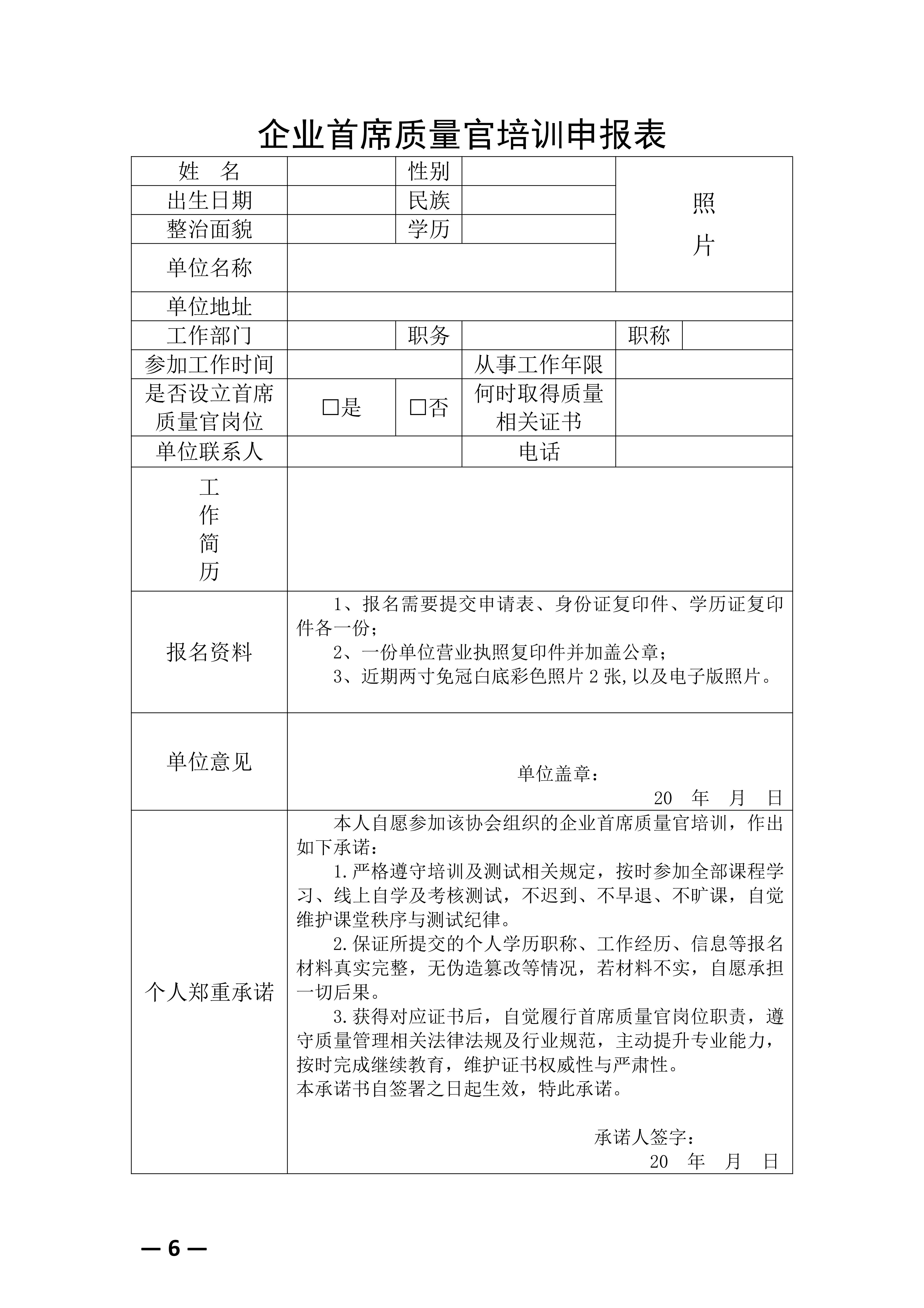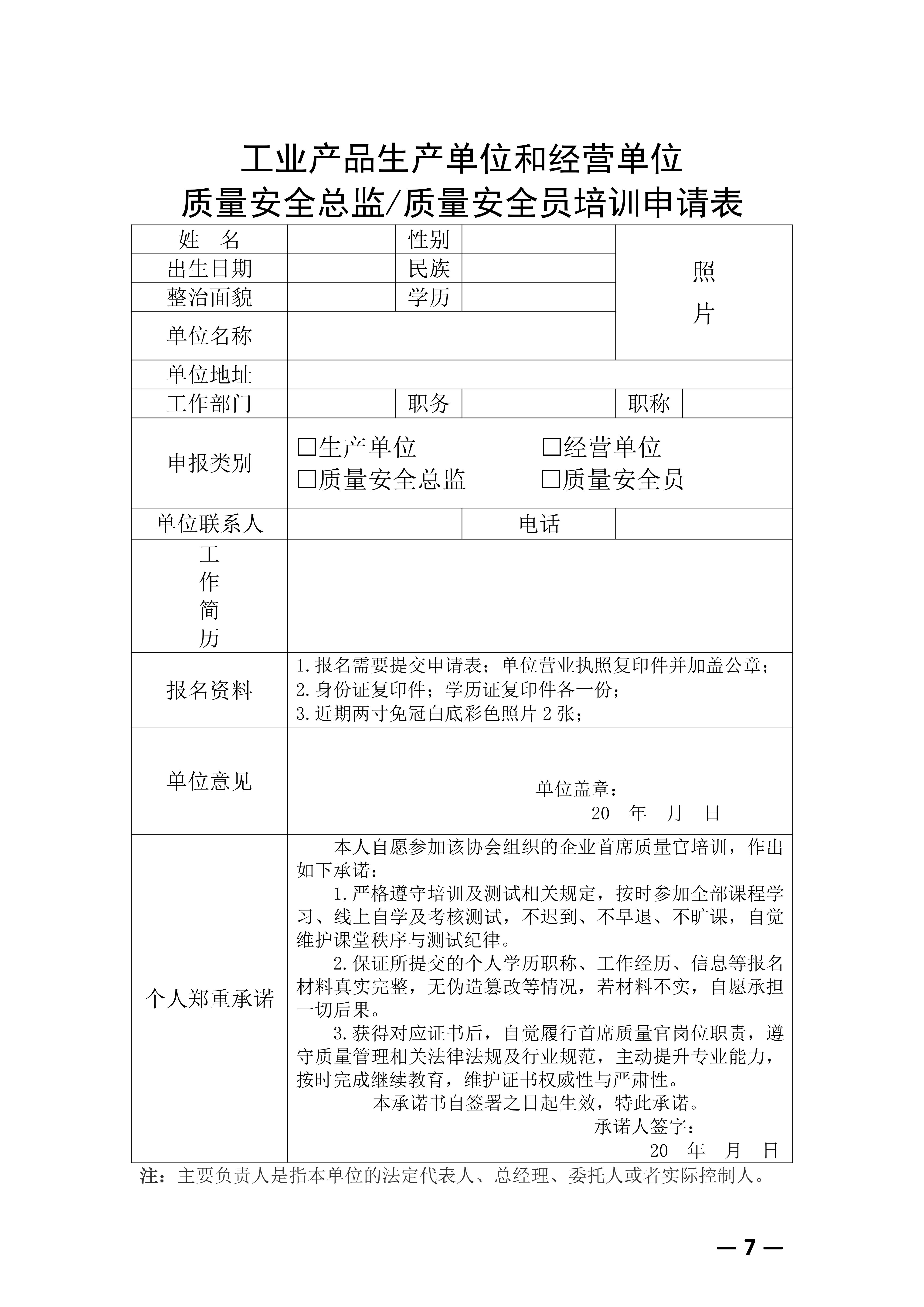 工业产品生产单位和经营单位质量安全总监质量安全员培训申请表
