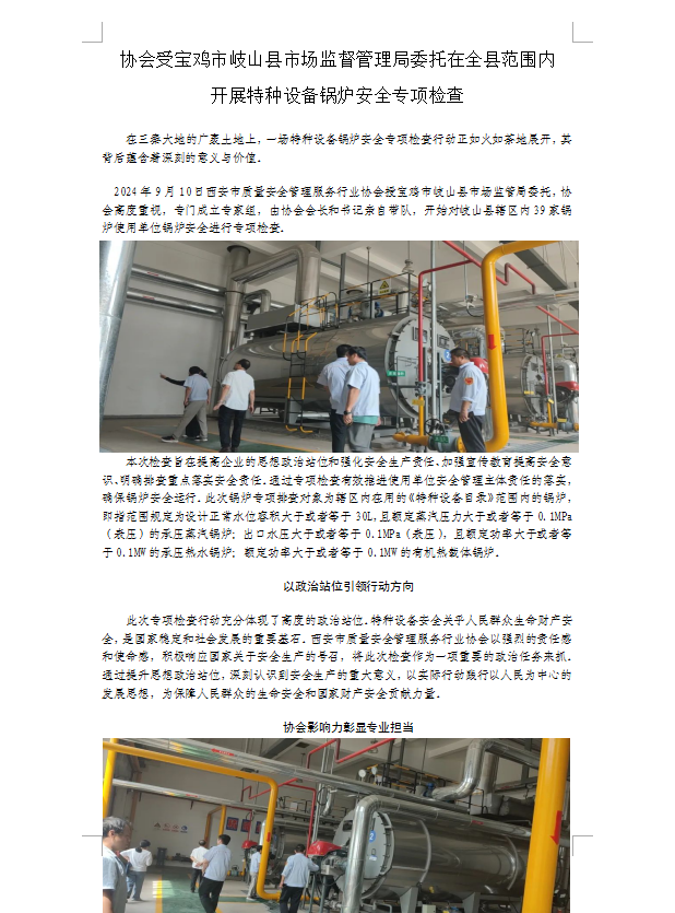 协会受委托--对宝鸡市岐山全县开展特种设备(锅炉)使用单位开展安全大检查